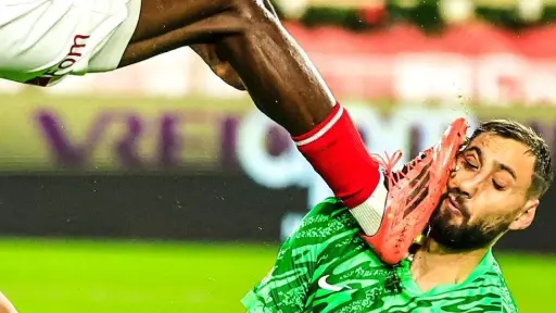 El portero del PSG, Gianluigi Donnarumma, recibió un fuerte golpe por parte de Wilfried Singo, jugador del Mónaco.