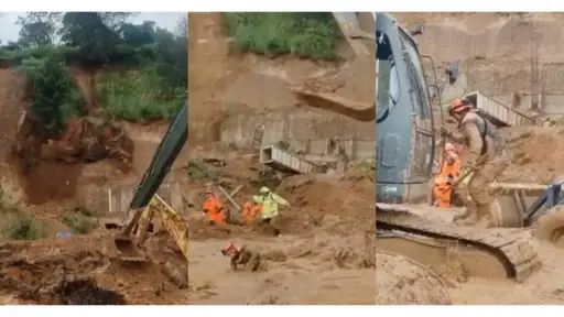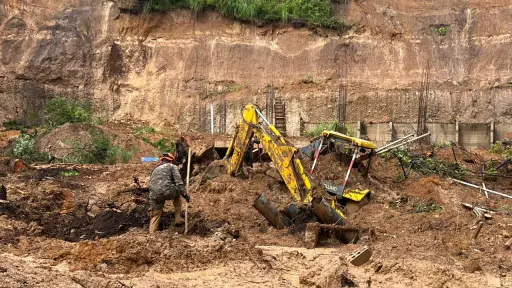 Los equipos continúan trabajando en el área, donde se han tenido más desprendimientos de material y sigue la búsqueda de una persona soterrada.
