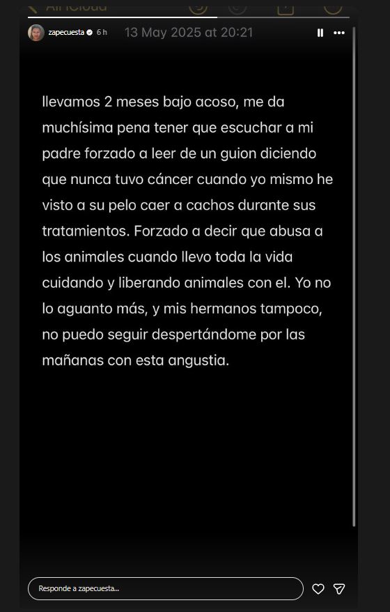 Además, Zape expresó su angustia por la situación y su preocupación por el bienestar de su padre.