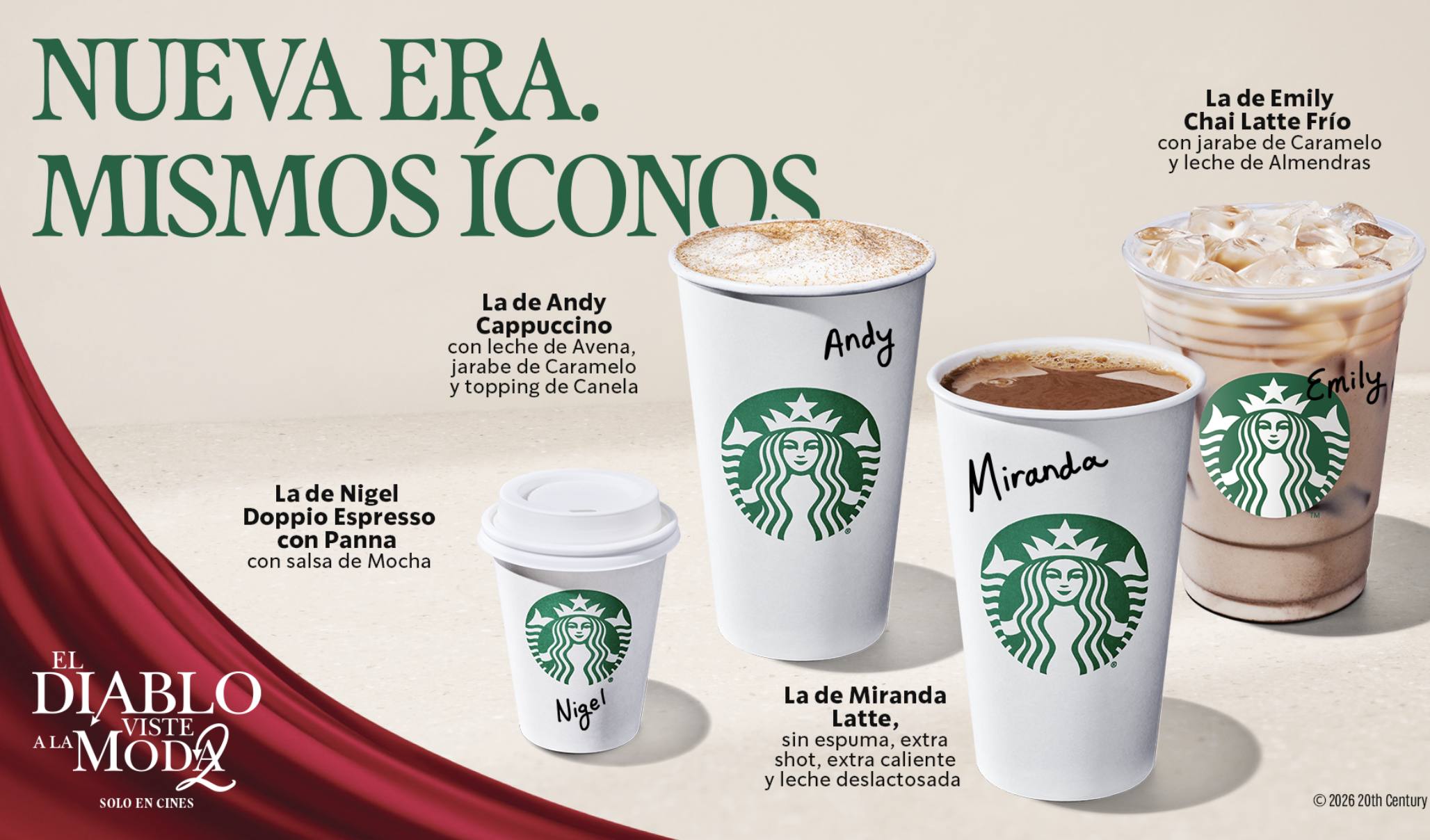La marca lanzó una campaña especial que conecta directamente con el universo cinematográfico, creando una experiencia inmersiva para los fans a través del café. Starbucks anunció una colaboración global con "Devil Wears Prada 2" de 20th Century Studios, que llegará a cines el 30 de abril.