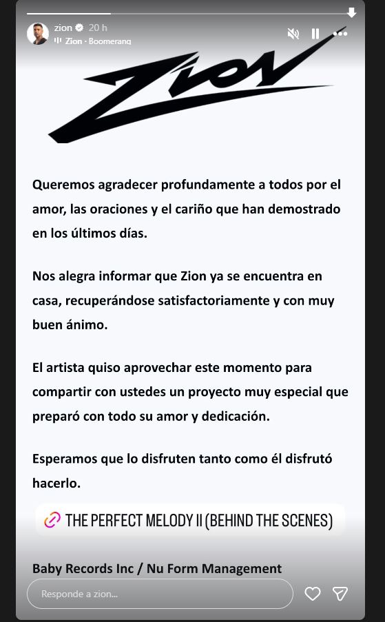 Tras su salida del hospital, los fanáticos de Zion han llenado las redes sociales con mensajes de apoyo, deseándole pronta recuperación. El reguetonero ha sido una figura clave en la evolución del género urbano, con una trayectoria que supera las dos décadas.