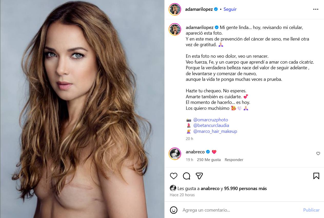 "Mi gente linda... hoy, revisando mi celular, apareció esta foto. Y en este mes de prevención del cáncer de seno, me llené otra vez de gratitud. ??En esta foto no veo dolor, veo un renacer. Veo fuerza, Fe, y un cuerpo que aprendí a amar con cada cicatriz. Porque la verdadera belleza nace del valor de seguir adelante ,de levantarse y comenzar de nuevo, aunque la vida te ponga muchas veces a prueba. Hazte tu chequeo. No esperes. Amarte también es cuidarte. ?El momento de hacerlo... es hoy. Los quiero muchísimo ????", escribió