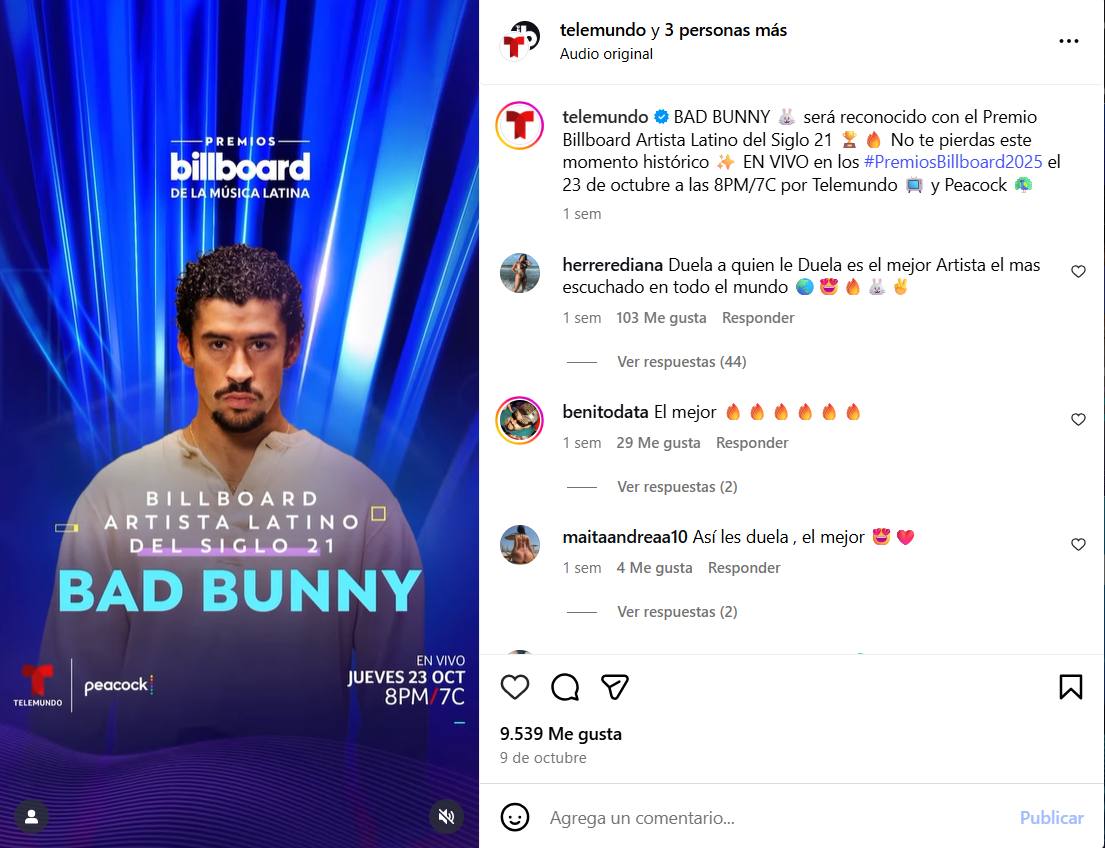 Durante la gala, el cantante Bad/Bunny recibirá el reconocimiento como "Artista Latino del Siglo 21".