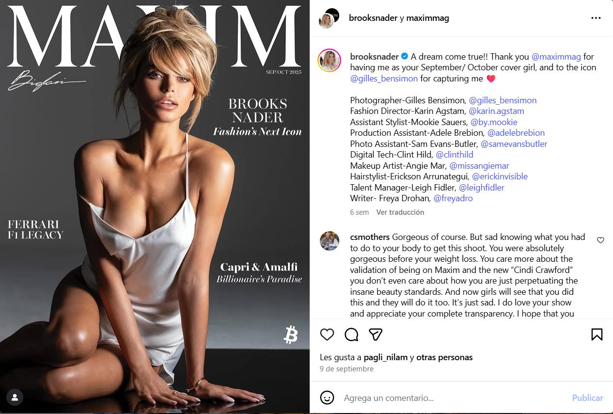Brooks Nader nació hace 28 años en Baton Rouge, Luisiana, Estados Unidos. Carrera en el Modelaje: Desde 2019, sus curvas y belleza la catapultaron al estrellato en el mundo del modelaje.