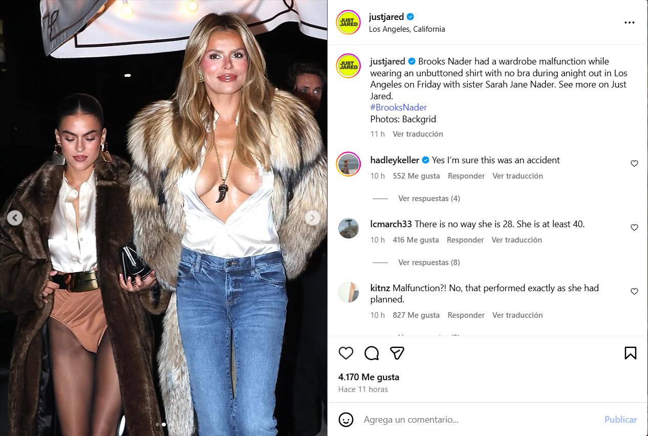 El atuendo de Brooks le jugó una mala pasada, pues mientras caminaba por la calle, con la blusa desabotonada, dejó ver parte de su intimidad.