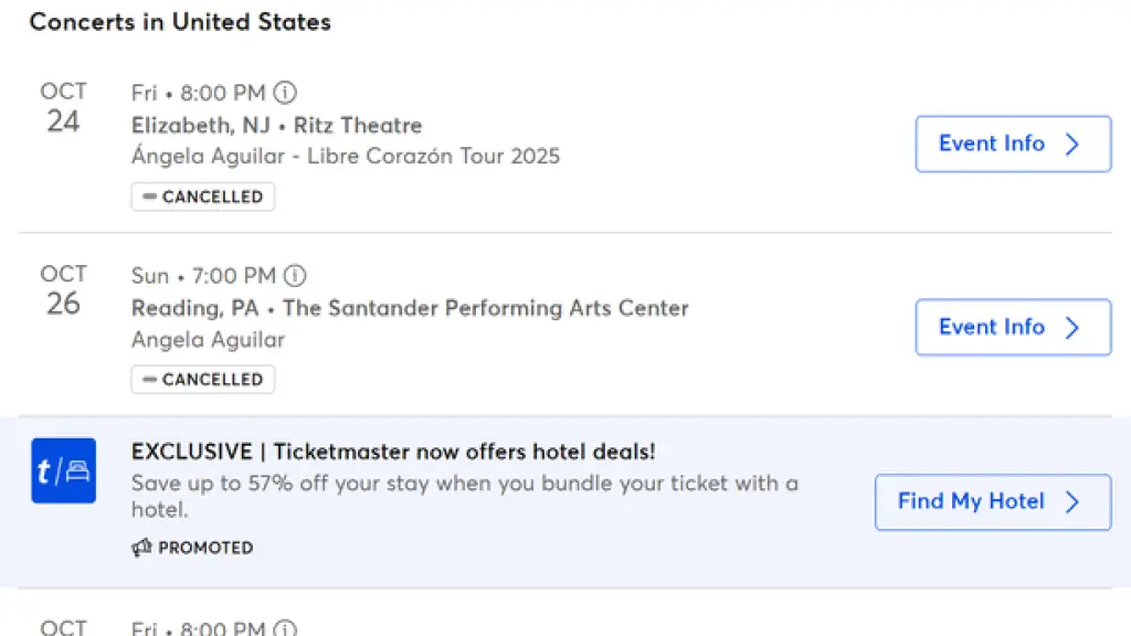 En la página de Ticketmaster se puede observar como estas sedes ya no tienen disponible la venta y están marcadas como 'Canceladas'.