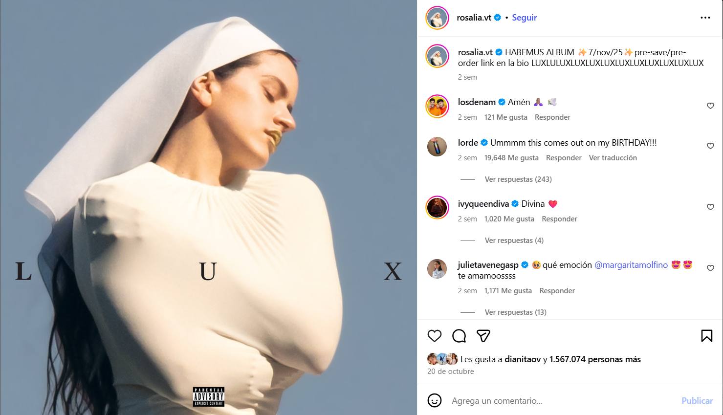 La cantante Rosalía estará hoy miércoles en Barcelona en un evento privado para promover el disco. El viernes, en la misma noche del lanzamiento, actuará en la gala de LOS40 Music Awards Santander 2025, que se celebrará por primera vez en Valencia.