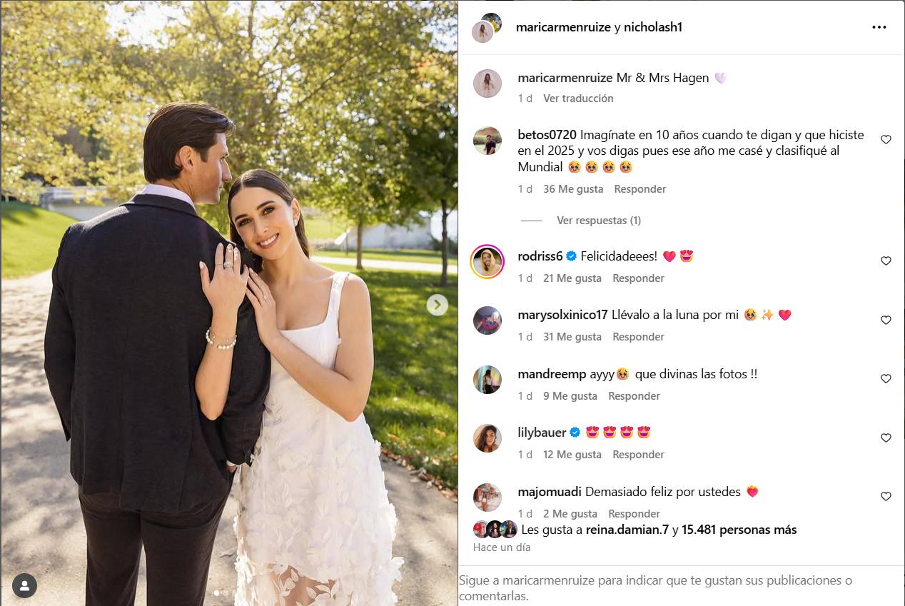 En el post donde reveló su enlace, el 3 de noviembre de 2025, escribió con orgullo: "Señor y Señora Hagen".