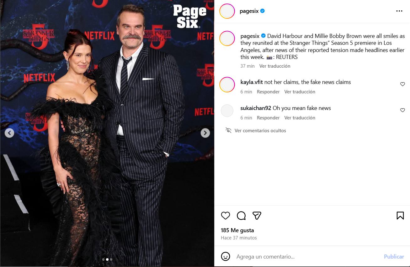 Aunque el estreno debía centrarse en el adiós a una de las series más exitosas de la historia reciente, el inesperado gesto entre Millie Bobby Brown y David Harbour terminó por robar el protagonismo.