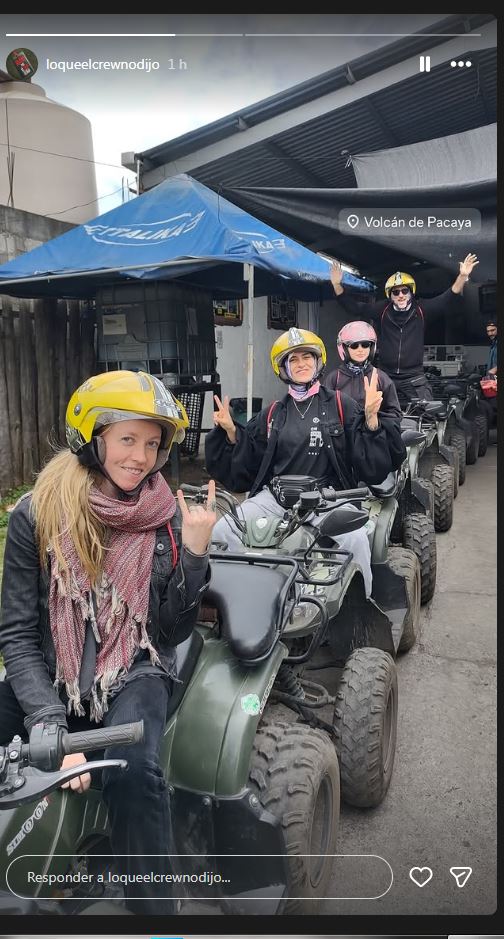Las fotografías muestran al equipo sonriente, portando cascos y disfrutando del recorrido en vehículos todo terreno, una experiencia que se ha vuelto popular entre los turistas nacionales y extranjeros que visitan el Pacaya por sus paisajes únicos y su historia volcánica.