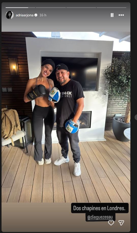 La actriz Adria Arjona compartió en sus redes sociales una imagen que ha generado orgullo entre los guatemaltecos. En sus historias de Instagram, la hija del cantautor Ricardo Arjona publicó una fotografía junto al reconocido entrenador Esaú Diéguez, acompañada del texto: "Dos chapines en Londres".