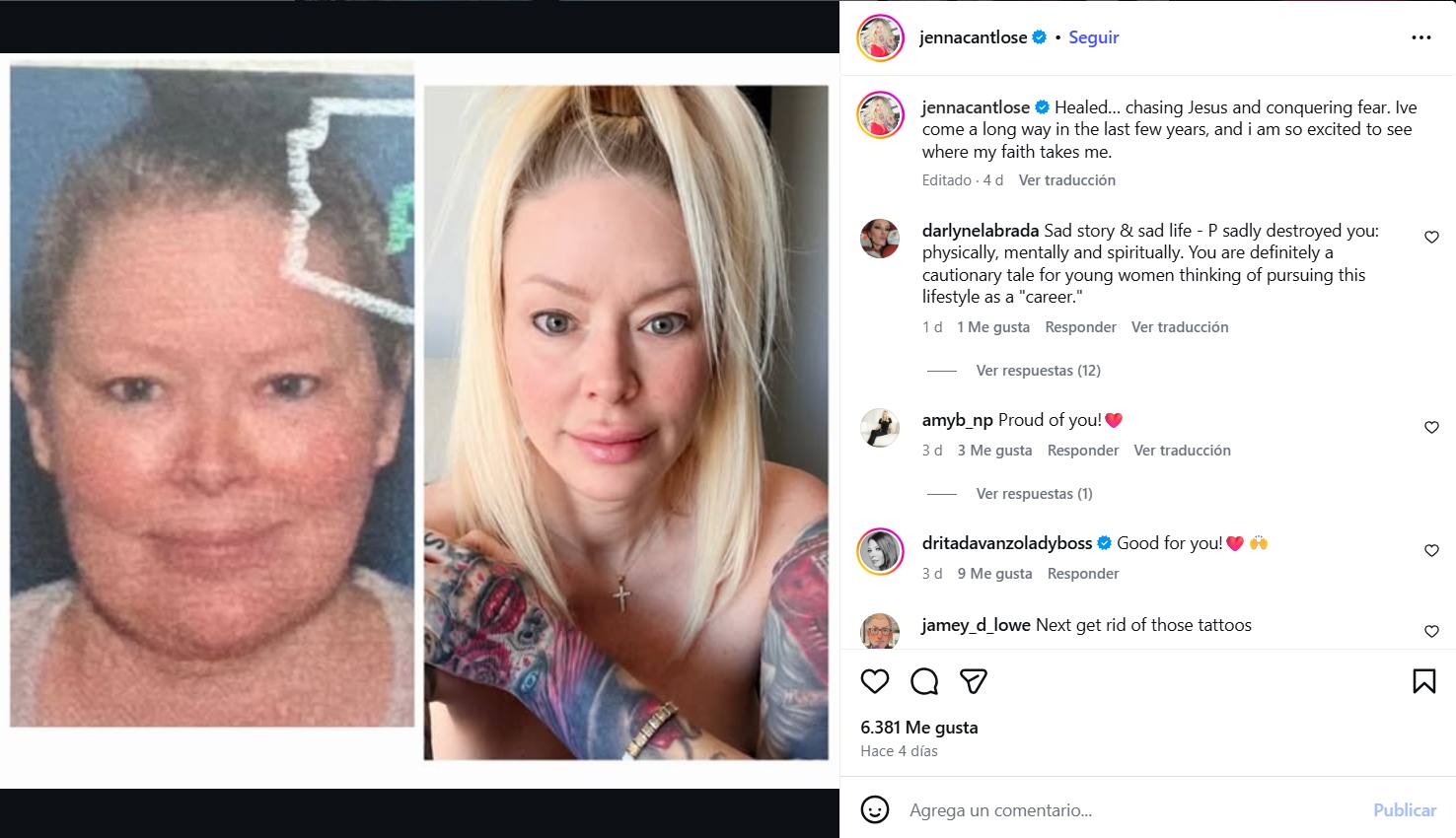 La actriz Jenna Jameson, quien dejó su carrera para dedicarse a la fe, compartió impactantes fotos de antes y después de su drástica transformación.