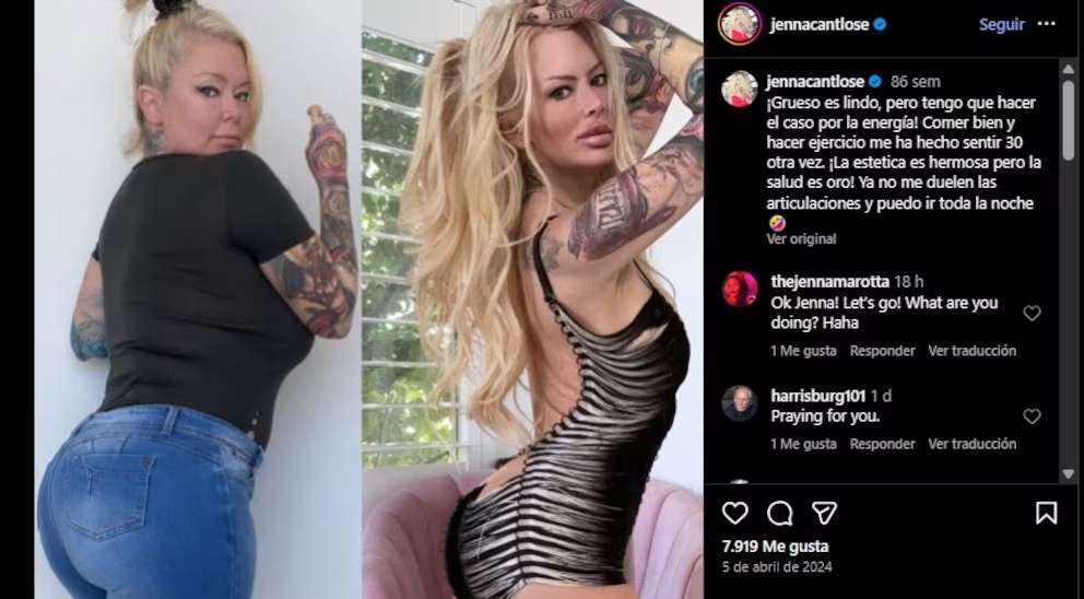 Jenna Jameson, exestrella de la industria del cine para adultos, volvió a generar conversación tras publicar nuevas imágenes sobre su pérdida de peso y su proceso personal ligado a la fe.