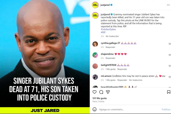 El cantante estadounidense Jubilant Sykes murió de forma violenta la noche del lunes, tras ser apuñalado por su hijo dentro de su propia vivienda.