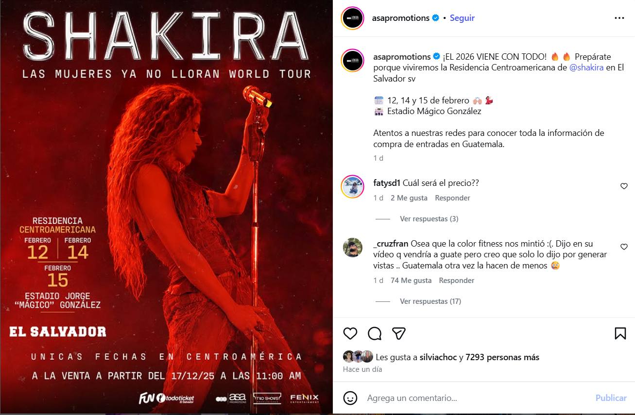 "¡EL 2026 VIENE CON TODO! ?? Prepárate porque viviremos la Residencia Centroamericana de @shakira en El Salvador ???️ 12, 14 y 15 de febrero ?????️ Estadio Mágico González. Atentos a nuestras redes para conocer toda la información de compra de entradas en Guatemala.