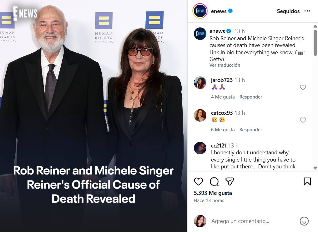 Rob Reiner y Michele causa de muerte Instagram