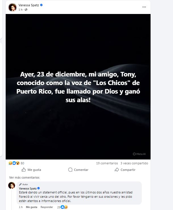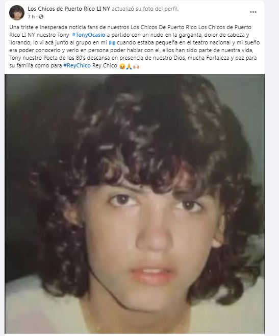 Vanessa Spatz y varios seguidores de la agrupación Los Chicos de Puerto Rico confirman la muerte del artista.