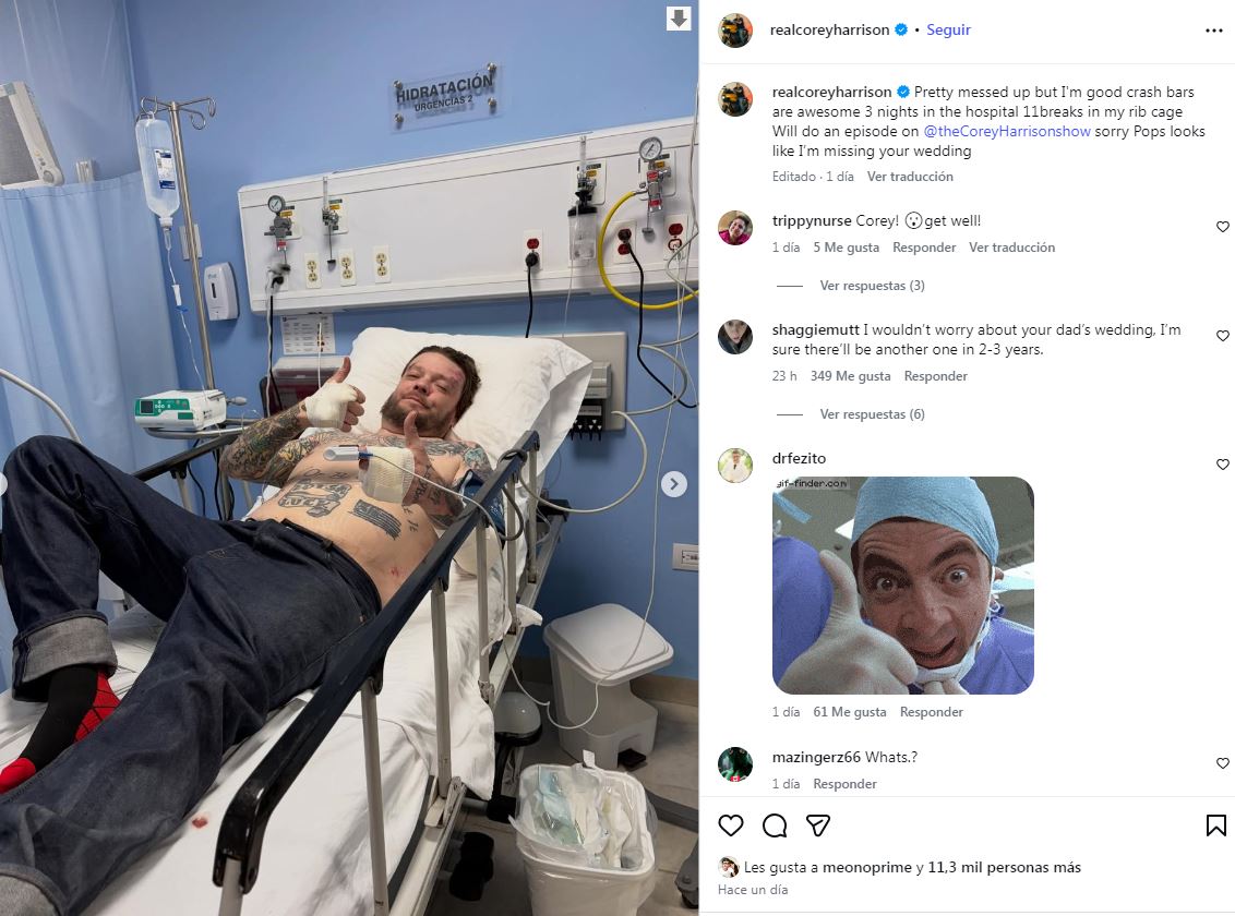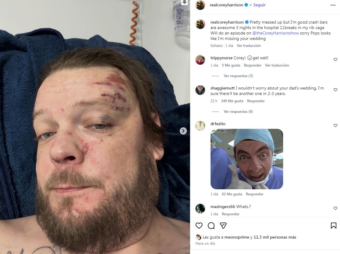 "Estoy bastante jodido, pero bien. Tres noches en el hospital y once fracturas en la caja torácica. Las barras antivuelco son increíbles", escribió, manteniendo el tono irónico que lo caracteriza. En el mismo mensaje, lamentó no poder asistir a un evento muy importante para su familia: la boda de su padre, Rick Harrison.
