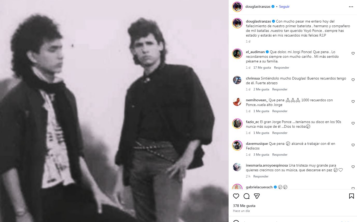 "Qué dolor, mi Jorgi Ponce", "Vuela alto", "Gracias por la música" y "Marcaste una época", fueron algunos de los mensajes que inundaron la publicación, evidenciando el cariño que despertó su partida entre varias generaciones de seguidores de Tranzas.