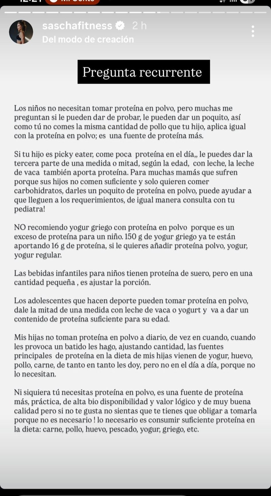 El mensaje, presentado en formato educativo, deja claro desde el inicio un punto clave: los niños no necesitan proteína en polvo.