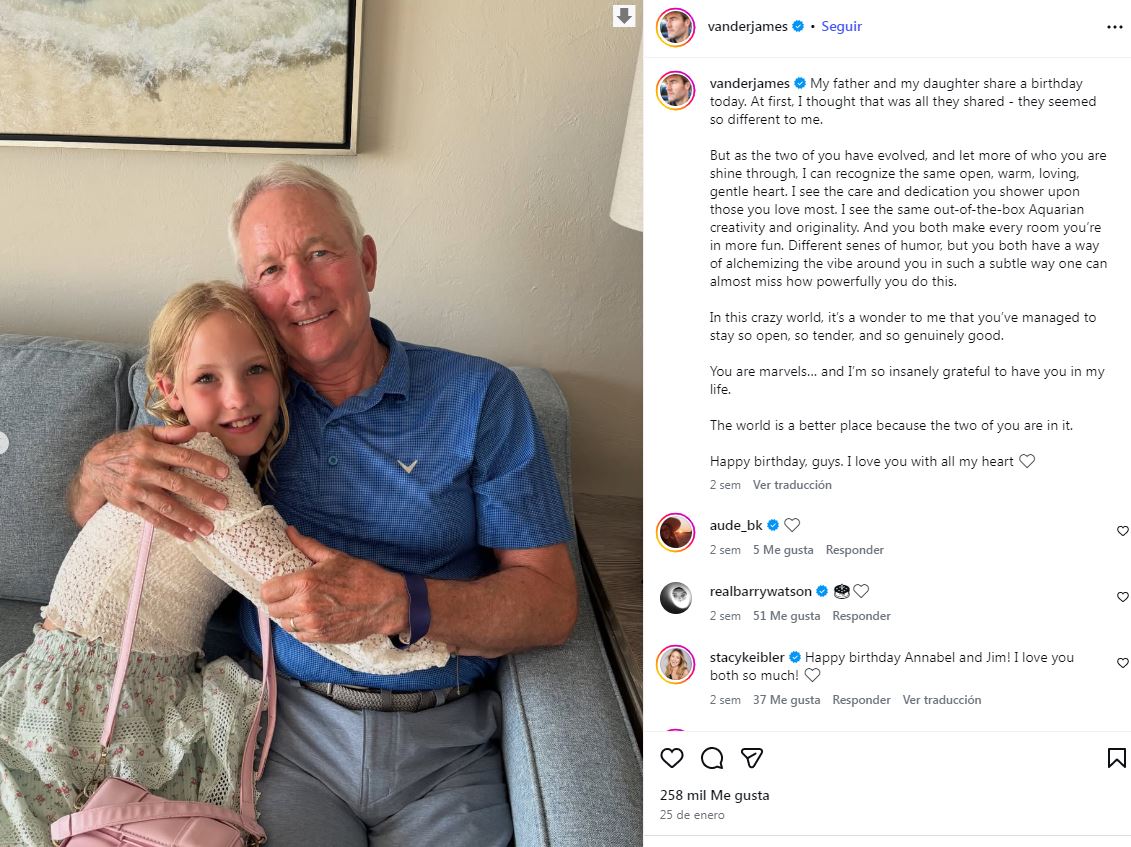En aquella publicación, Van Der Beek escribió sobre el vínculo entre ambas personas y cómo, con el paso del tiempo, descubrió similitudes entre ellas. El actor describió a su padre y a su hija como personas de "corazón abierto, cálido, amoroso y tierno", destacando la dedicación que ambos mostraban hacia quienes amaban.