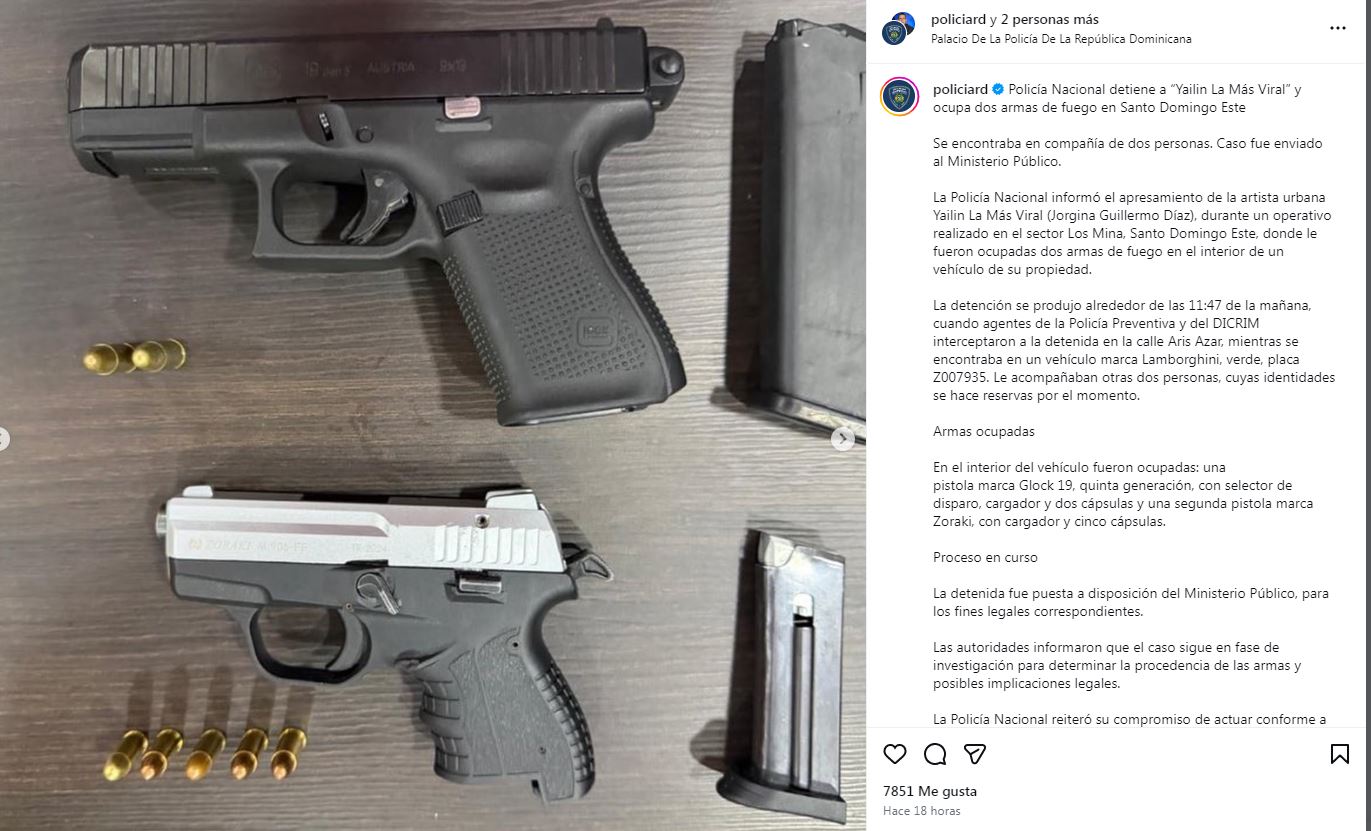 En declaraciones preliminares, voceros del operativo señalaron que "se actuó conforme al protocolo establecido" y que el caso será analizado para establecer la procedencia de las armas y la posible responsabilidad de los involucrados. Al momento del arresto, Yailin La Más Viral no se encontraba sola, sino acompañada por otras dos personas cuyas identidades no han sido reveladas oficialmente.