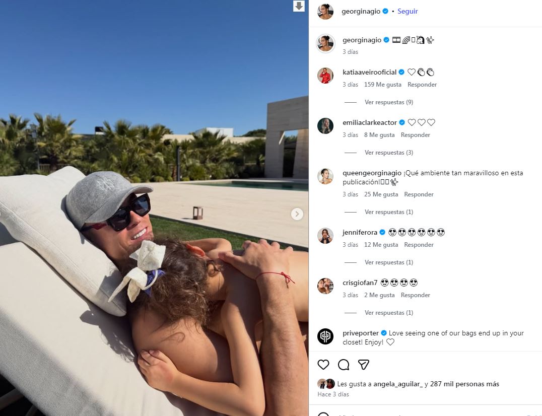 Junto a ella se encuentra su pareja, el futbolista Cristiano Ronaldo, quien también aprovecha estos días para desconectarse del ritmo competitivo del fútbol. El astro portugués disfruta del descanso acompañado de Georgina, sus hijos y un ambiente familiar que contrasta con la intensidad de su carrera profesional.
