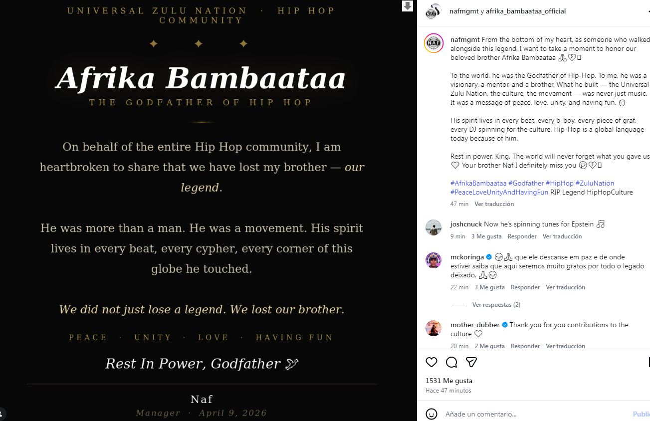 Su muerte representa una pérdida significativa para la cultura urbana global, ya que Bambaataa es ampliamente reconocido como uno de los arquitectos del hip-hop, un movimiento que trascendió la música para convertirse en una expresión cultural, social y política a nivel mundial.