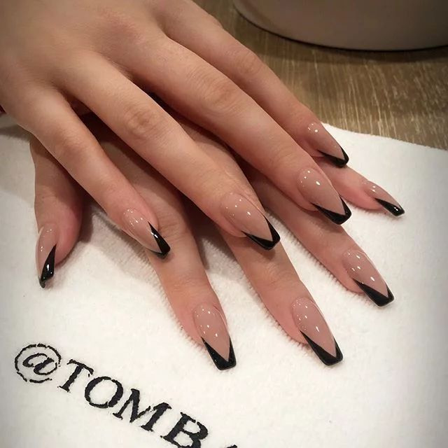 El clásico negro se reinventa este año al combinarse con tonos nude o beige rosado. La idea es crear un contraste elegante con líneas finas, medias lunas o puntas invertidas que le dan un aire moderno y discreto al diseño.